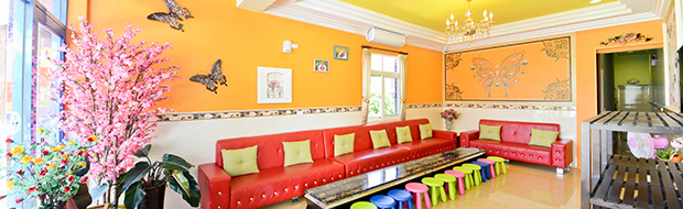 彩色的蝴蝶漫妙飛舞在采蝶法拉的空中花園裡,繽紛的色塊拼湊出 自我風格,在充滿鄉村田園風中另有其它風格的特色房型,義大利文farfalla(蝴蝶)的語調,讓人感受到動靜皆美的花蝴蝶,是另人喜愛的!